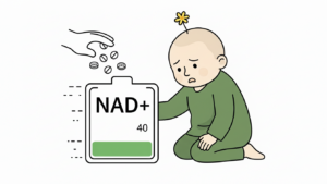이 시스템 오류를 복구하기 위해 가장 중요한 물질이 바로 NAD+다. NAD+는 손상된 DNA를 복구하고 장수 유전자를 활성화하는 데 필수적인 물질이지만, 나이가 들수록 수치가 급격히 감소한다. 40대가 되면 20대의 절반 수준으로 떨어진다. 연료가 부족해지면서 시스템의 오류를 방치하게 되고, 이것이 노화를 가속화한다. ⚡